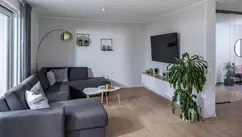 Mit seinem schlichten Design wirkt die moderne Stadtvilla Pfeilschmidt rundum stilvoll. Auf 182 m² Wohnfläche wird in diesem zweigeschossigen Einfamilienhaus der individuelle Wohntraum für bis zu fünf Personen wahr. Mit vier Schlafräumen, zwei Bädern, einem Gäste-WC, einer Garage und großflächigen Wohn- und Lagermöglichkeiten hat Haus Pfeilschmidt viel zu bieten. Auf über 99 m² Wohnfläche im Erdgeschoss verteilen sich ein Gästezimmer, ein Gäste-WC sowie ein geräumiger Hauswirtschaftsraum mit direktem Zugang zu Garage und Abstellraum. Der Dielenbereich ist mit einer Glasschiebetür vom Wohnbereich abgetrennt. Das Wohnzimmer, der Essbereich und die Küche teilen sich ohne räumliche Abtrennung die restliche Erdgeschoss-Fläche. Von hier aus geht es hinaus auf die teilüberdachte Terrasse und in den Garten. Im Obergeschoss gibt es einen abgetrennten Elternbereich mit mittig gelegener Ankleide, von der es in das Elternschlafzimmer und in das Elternbad mit begehbarer Dusche und Badewanne geht. Die Kinder des Hauses haben ebenfalls ein eigenes Badezimmer sowie jeweils rund 16 m² große Kinderzimmer.